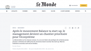 Le Monde : Après le mouvement Balance ta start-up, le management devient un chantier prioritaire pour l’écosystèmeEn savoir plus